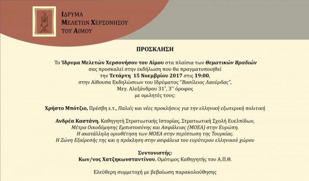 Εκδήλωση του Ιδρύματος Μελετών Χερσονήσου του Αίμου στο πλαίσιο των “Θεματικών Βραδιών”