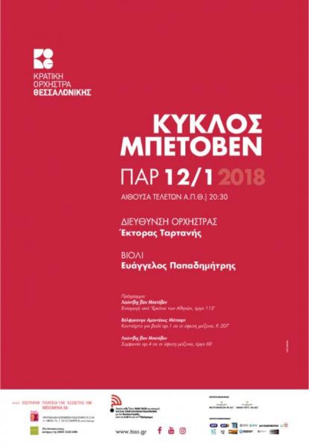 Ο Μπετόβεν έγραψε μουσική και για το θεατρικό έργο του August von Kotzebue ‘Ερείπια των Αθηνών’. Η ουβερτούρα μας εισάγει στο κλίμα της υπόθεσης που εκτυλίσσεται στην τουρκοκρατούμενη Αθήνα και εμπεριέχει όλη τη λαμπρότητα ενός έργου που γράφτηκε για την ανύψωση του πατριωτικού αισθήματος του λαού και την εξύμνηση του αυτοκράτορα. Το πρόγραμμα ολοκληρώνεται με το γεμάτο νεανικό σφρίγος και εκφραστικότητα ‘Κοντσέρτο για βιολί αρ.1’ του Μότσαρτ, που ερμηνεύει ένας έμπειρος βιολονίστας από το δυναμικό της Κ.Ο.Θ., ο Ευάγγελος Παπαδημήτρης. Διευθύνει ο ταλαντούχος μαέστρος Έκτορας Ταρτανής, πρώτος Kapellmeister και αναπληρωτής γενικός μουσικός διευθυντής της Κρατικής Όπερας και της Συμφωνικής Ορχήστρας του Bremerhaven.