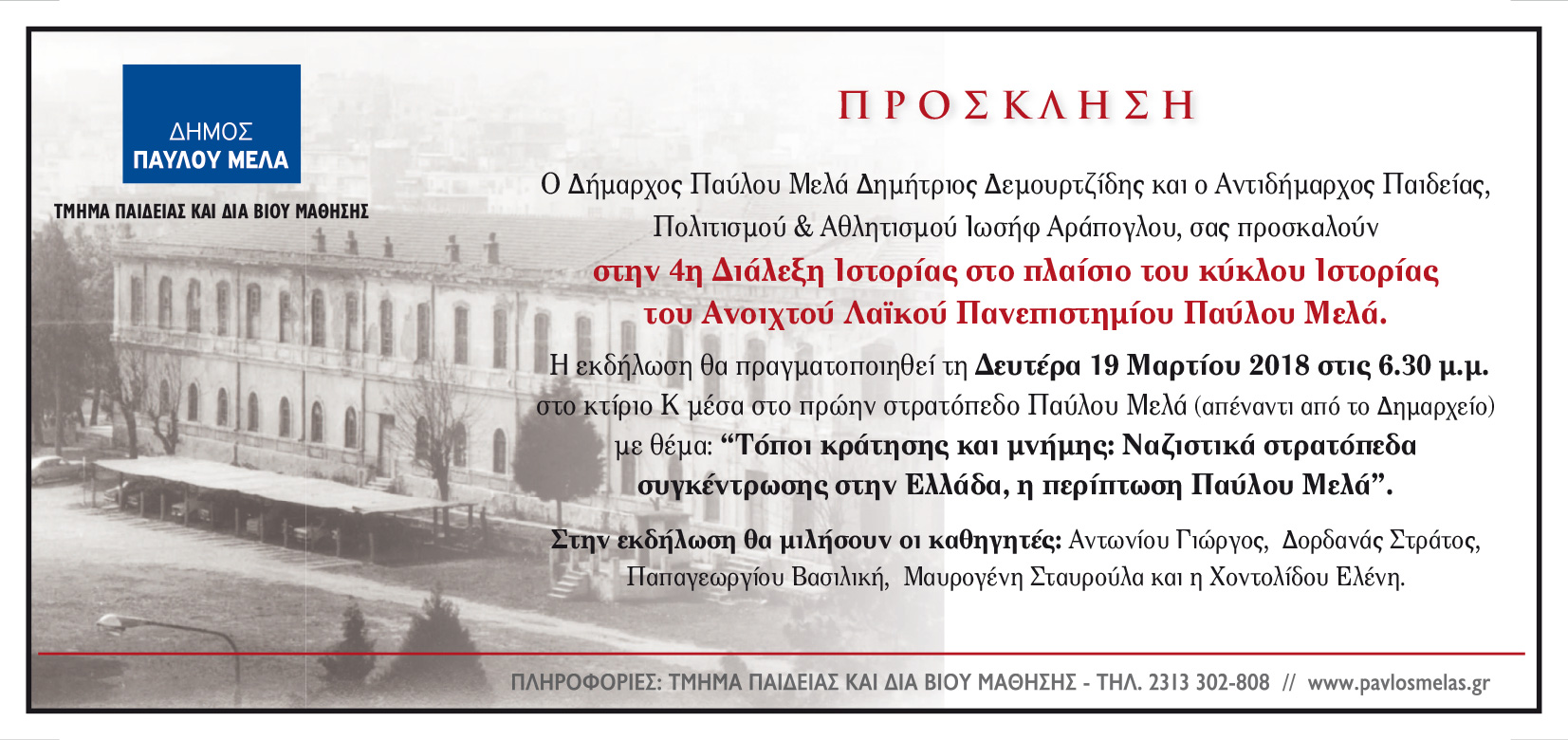 Χώρος: Κτίριο Κ, πρώην Στρατόπεδο Παύλου Μελά (απέναντι από το Δημαρχείο)