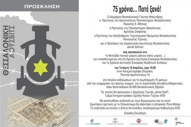 1ο Φεστιβάλ ταινιών μικρού μήκους στο πλαισο των εκδηλώσεων ”75 χρόνια… Ποτέ ξανά!”
