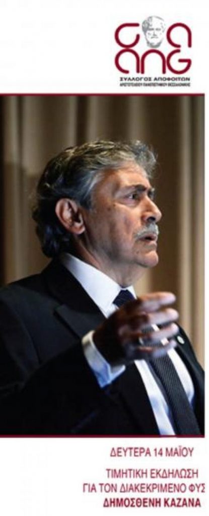 Ο Σύλλογος Αποφοίτων του 5ου Γυμνασίου-Λυκείου Θεσσαλονίκης και ο Σύλλογος Αποφοίτων του Αριστοτελείου Πανεπιστημίου Θεσσαλονίκης (ΑΠΘ) οργανώνουν εκδήλωση προς τιμήν του διακεκριμένου έλληνα φυσικού Δημοσθένη Καζάνα.
