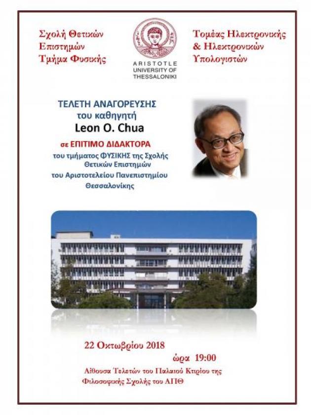 Μετα την αναγορεύσή του ο κ. Leon O. Chua θα δώσει διάλεξη με θέμα: