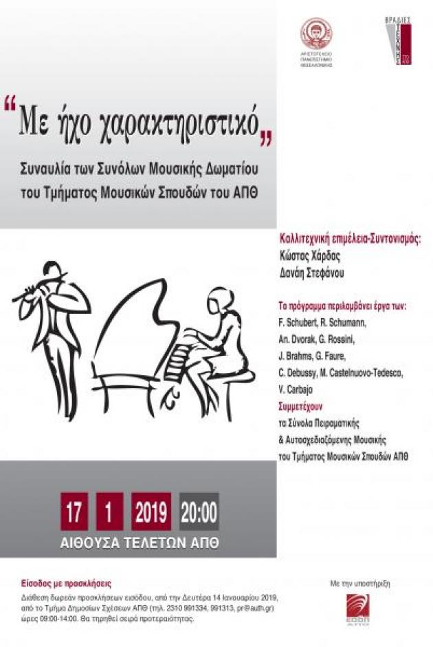 ΒΡΑΔΙΕΣ ΤΕΧΝΗΣ στο ΑΠΘ: Συναυλία “Με ήχο χαρακτηριστικό” των Συνόλων Μουσικής Δωματίου του Τμήματος Μουσικών Σπουδών του ΑΠΘ