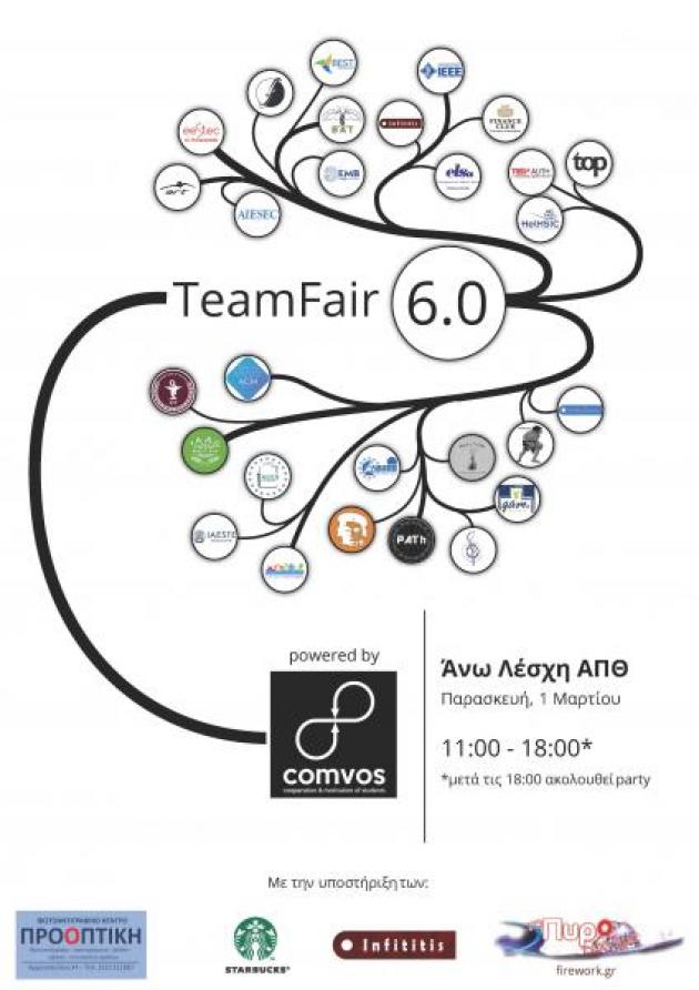 Η εκδήλωση TeamFair AUTH αποτελεί την πρώτη προσπάθεια στα χρονικά του Ελληνικού Πανεπιστημίου, η οποία πραγματώνει το όραμα του Co.Mv.o.S. για τη συγκέντρωση όλων των φοιτητικών ομάδων που δραστηριοποιούνται στο χώρο του ΑΠΘ και του Πανεπιστημίου Μακεδονίας. Για πρώτη φορά φέτος θα συμμετάσχουν και θεατρικές και καλλιτεχνικές ομάδες του ΑΠΘ.