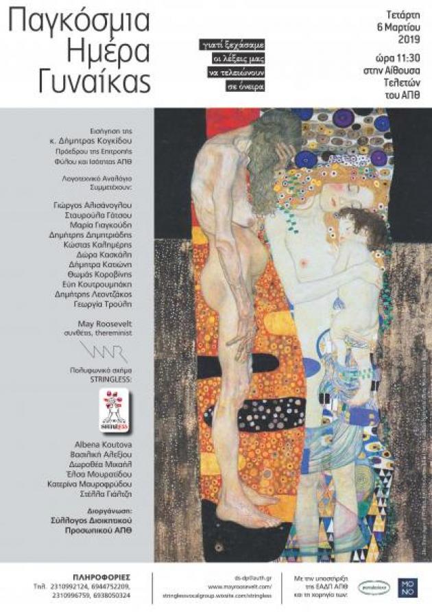 Ο Σύλλογος Διοικητικού Προσωπικού του Αριστοτελείου Πανεπιστημίου Θεσσαλονίκης, διοργανώνει εκδήλωση για τον εορτασμό της Παγκόσμιας Ημέρας της Γυναίκας: