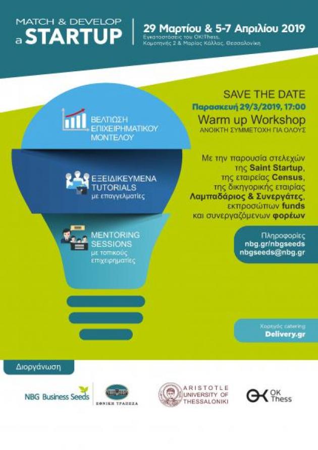 Το σεμινάριο «Match and Develop a Startup @ Thessaloniki 3.0» θα πραγματοποιηθεί από το απόγευμα της Παρασκευής 05 Απριλίου 2019 μέχρι την Κυριακή 07 Απριλίου 2019 (με ένα προπαρασκευαστικό εργαστήριο στις 29/3), στο χώρο του OK!Thess, στη Θεσσαλονίκη.