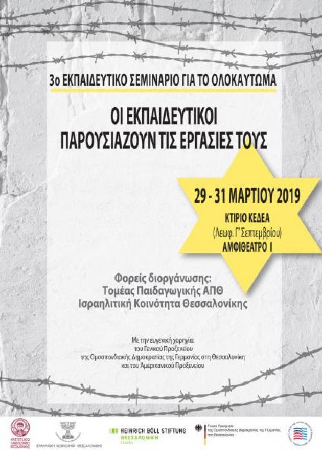 Ο τομέας Παιδαγωγικής του ΑΠΘ και η Ισραηλητική Κοινότητα Θεσσαλονίκης οργανώνουν το 3ο Εκπαιδευτικό σεμινάριο για το Ολοκαύτωμα