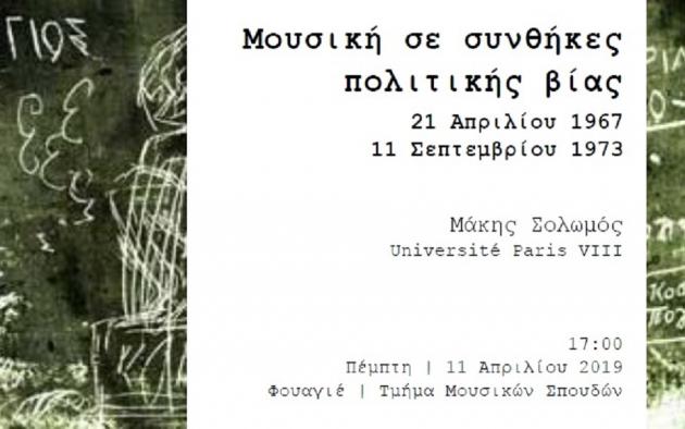 Mουσική σε συνθήκες πολιτικής βίας 21 Απριλίου 1967 – 11 Σεπτεμβρίου 1973 – Μάκης Σολωμός Université Paris VIII.