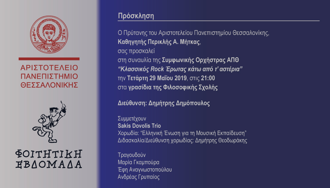 Η συναυλία πραγματοποιείται στο πλαίσιο της Φοιτητικής Εβδομάδας.