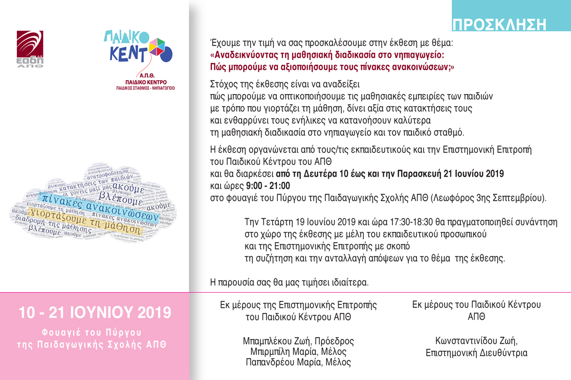 Εκ μέρους του Παιδικού Κέντρου ΑΠΘ