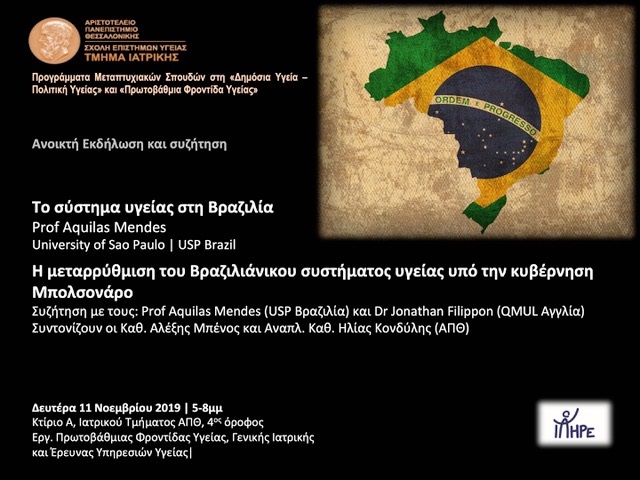 με προσκεκλημένους ομιλητές τους Prof Aquilas Mendes (καθηγητή στην Εθνική Σχολή Δημόσιας Υγείας του Πανεπιστημίου του Σάο Πάολο) και Dr Jonathan Filippon (λέκτορα στην Ιατρική Σχολή Barts, του Πανεπιστημίου Queen Mary του Λονδίνου).