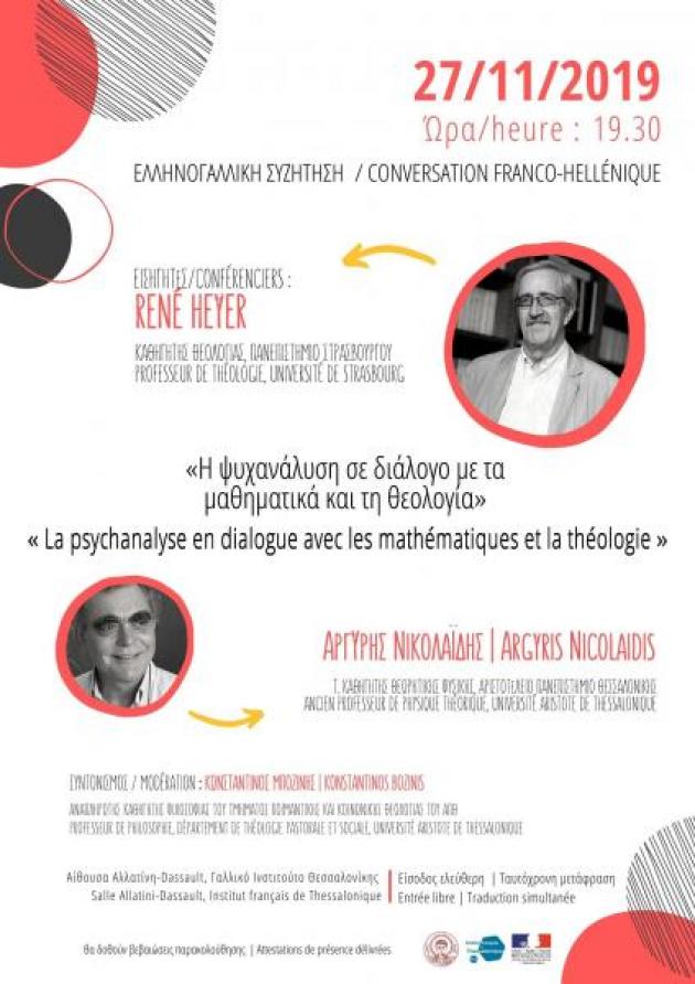Το Γαλλικό Ινστιτούτο Θεσσαλονίκης και το Αριστοτέλειο Πανεπιστήμιο Θεσσαλονίκης συνδιοργανώνουν στην αίθουσα Αλλατίνη – Dassault, την Τετάρτη 27 Νοεμβρίου 2019, μια πολύ σημαντική επιστημονική εκδήλωση για την Ψυχανάλυση, τα μαθηματικά και τη θεολογία.