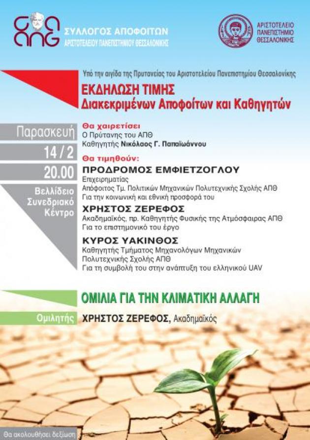 Σύλλογος Αποφοίτων ΑΠΘ: Εκδήλωση Τιμής Διακεκριμένων Αποφοίτων και Καθηγητών