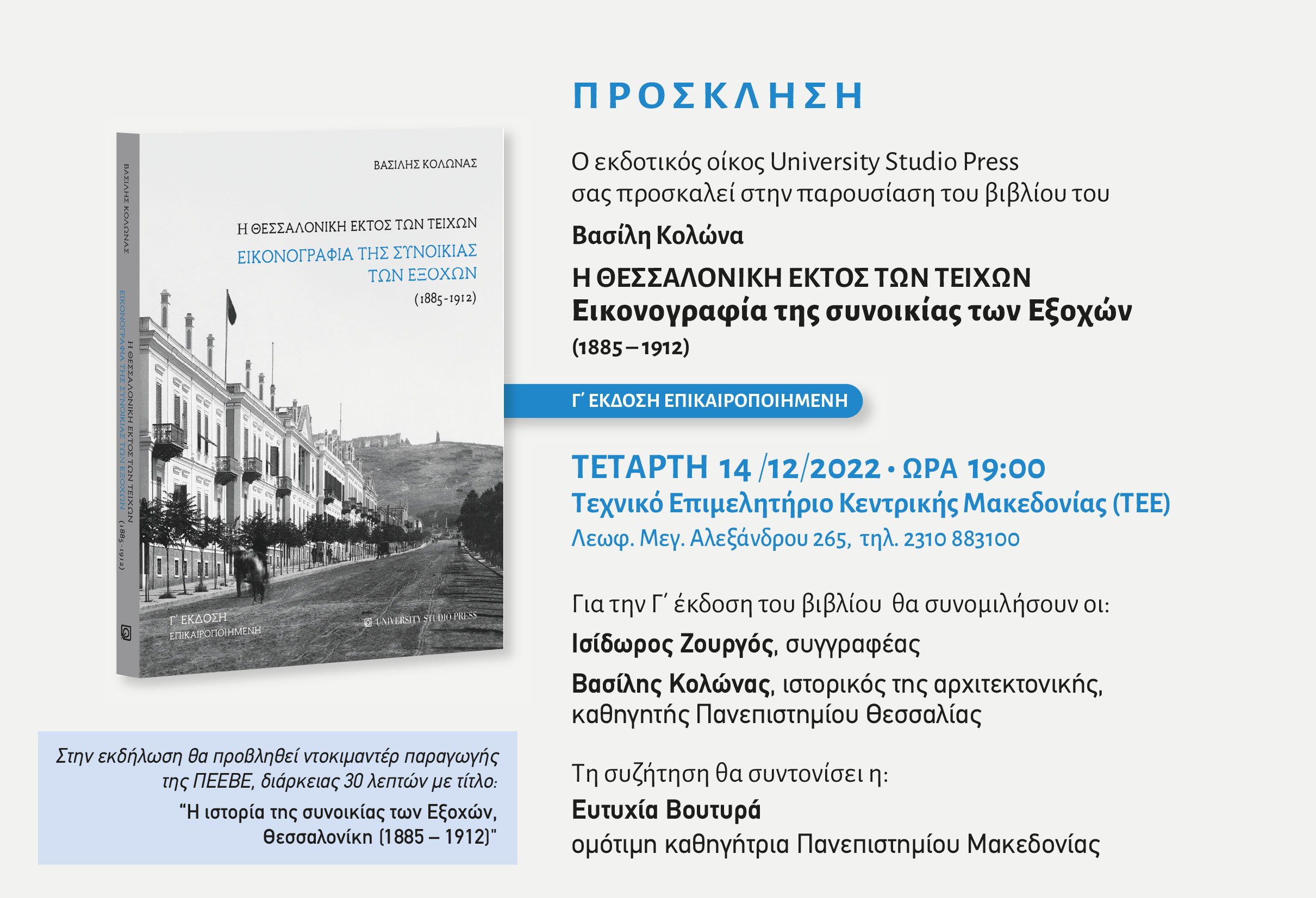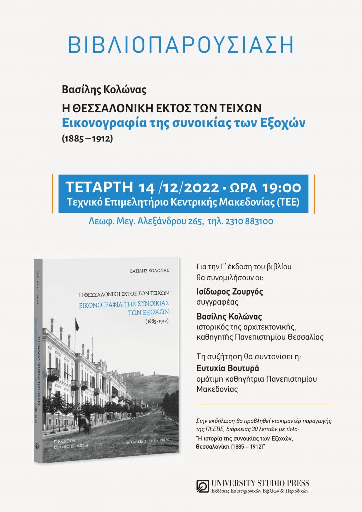 Bιβλιοπαρουσίαση της Γ’ έκδοσης του βιβλίου «Η Θεσσαλονίκη εκτός των τειχών» του Β. Κολώνα