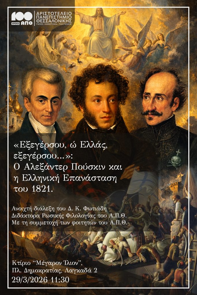 Διάλεξη με θέμα, “Εξεγέρσου, ώ Ελλάς, εξεγέσου-Ο Αλεξάντερ Πούσκιν και η Ελληνική Επανάσταση 1821”, Πρόγραμμα “ΙΑΣΩΝ”, Κέντρο Διδασκαλίας Ξένων Γλωσσών ΑΠΘ