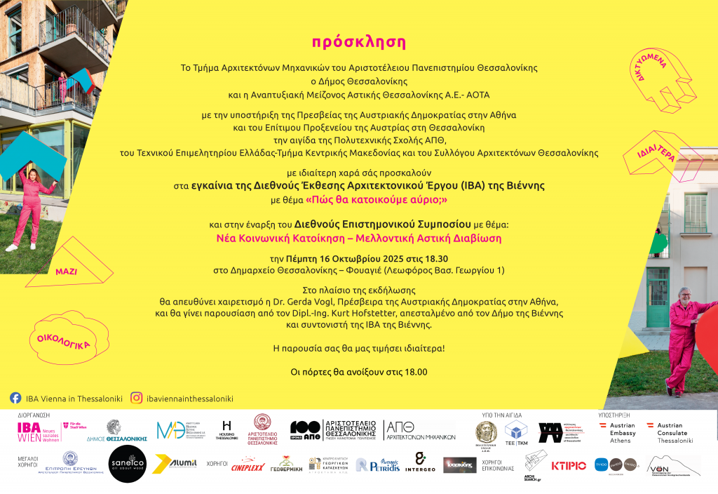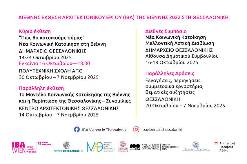 Κύρια έκθεση “Πώς θα κατοικούμε αύριο;” – Νέα Κοινωνική Κατοίκηση στη Βιέννη @ ΔΗΜΑΡΧΕΙΟ ΘΕΣΣΑΛΟΝΙΚΗΣ (λεωφ. Βασ.Γεωργίου 1) _14-24 ΟΚΤΩΒΡΙΟΥ 2025 – Εγκαίνια 16 Οκτ. 18.00
