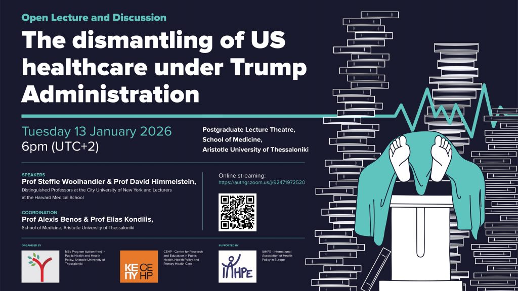 Το ΠΜΣ “Δημόσια Υγεία – Πολιτική Υγείας” του Τμήματος Ιατρικής ΑΠΘ με τη στήριξη του ΚΕΠΥ – Κέντρου Έρευνας και Εκπαίδευσης στη Δημόσια Υγεία, την Πολιτική Υγείας και την ΠΦΥ και της IAHPE – International Association of Health Policy in Europe διοργανώνουν: