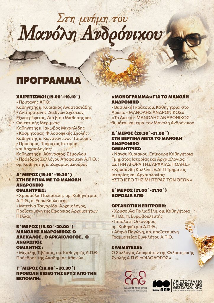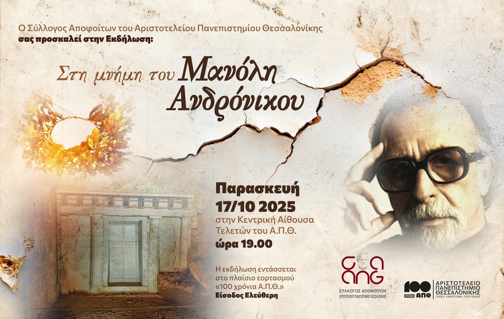 “Στη Μνήμη του Μανόλη Ανδρόνικου” Εκδήλωση από το Σύλλογο Αποφοίτων ΑΠΘ