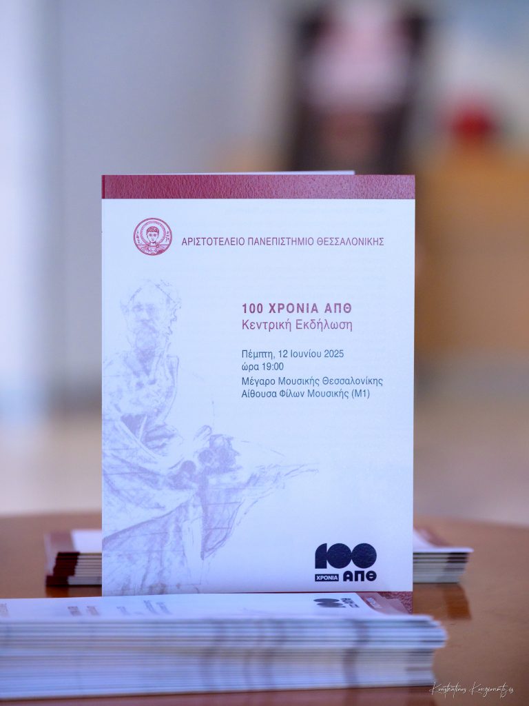 H επετειακή εκδήλωση για τη συμπλήρωση ενός αιώνα από την ίδρυση του Αριστοτέλειου Πανεπιστημίου, πραγματοποιήθηκε την Πέμπτη 12 Ιουνίου 2025, στο Μέγαρο Μουσικής Θεσσαλονίκης, παρουσία του Προέδρου της Δημοκρατίας, κ. Κωνσταντίνου Αν. Τασούλα.