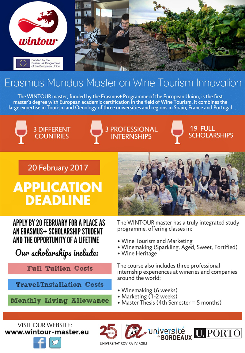“The Erasmus Mundus Master on Wine Tourism Innovation (WINTOUR) combines a large expertise in Tourism and Oenology of three universities and regions: