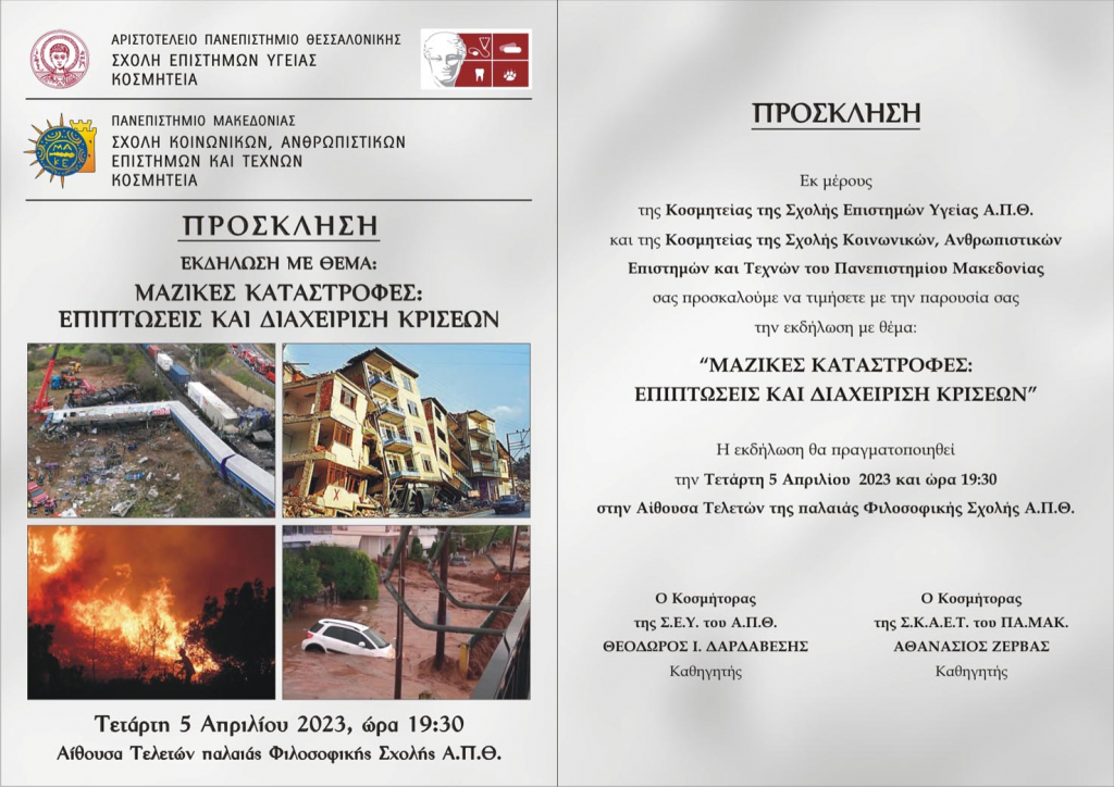 Eκδήλωση με θέμα “Μαζικές Καταστροφές: Επιπτώσεις και Διαχείριση Κρίσεων”