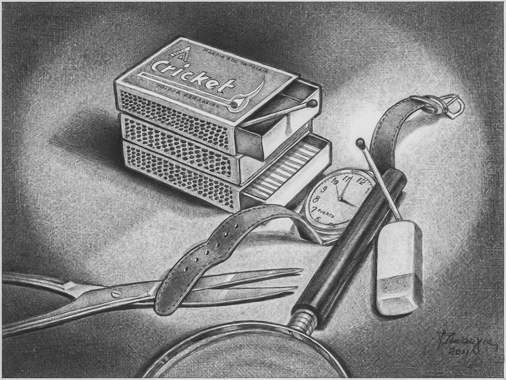 Γιάννης Τσατσάγιας, Τα ξύλινα σπαθιά, 2018, στιλό μπικ, 15×22 εκ. Συλλογή Γιάννη Τσατσάγια