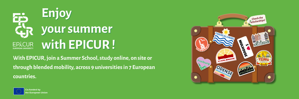 Σας προσκαλούμε να αξιοποιήσετε την ευκαιρία συμμετοχής σε ένα δυναμικό ευρωπαϊκό εκπαιδευτικό περιβάλλον και να ενισχύσετε τη διεθνή σας εμπειρία μέσω της Συμμαχίας EPICUR. Η συμμετοχή στα θερινά μαθήματα EPICUR με υποτροφία σας προσφέρει μία άμεση, ουσιαστική και εύκολα προσβάσιμη εμπειρία διεθνούς ακαδημαϊκής κινητικότητας.