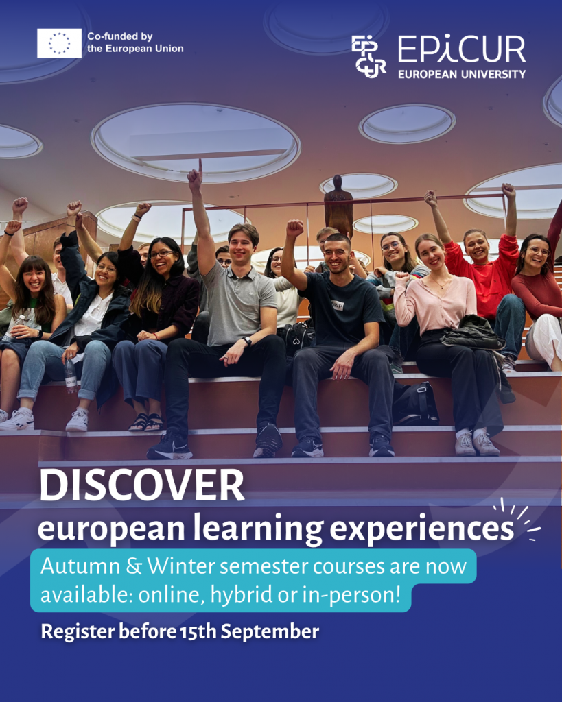 Σας ανακοινώνουμε την έναρξη των αιτήσεων για την παρακολούθηση μαθημάτων που θα πραγματοποιηθούν κατά το χειμερινό εξάμηνο του ακαδημαϊκού έτους 2025-26 στο Ευρωπαϊκό Πανεπιστήμιο της Συμμαχίας EPICUR, στο οποίο το Αριστοτέλειο Πανεπιστήμιο Θεσσαλονίκης συμμετέχει μαζί με άλλα 8 καταξιωμένα πανεπιστήμια της Ευρώπης : University of Strasbourg (Γαλλία), University of Amsterdam (Ολλανδία), University of Freiburg (Γερμανία), University of Haute-Alsace (Γαλλία), Karlsruhe Institute of Technology (Γερμανία), University of Southern Denmark (Δανία), University of Natural Resources and Life Sciences (Αυστρία) και Adam-Mickiewicz University (Πολωνία).