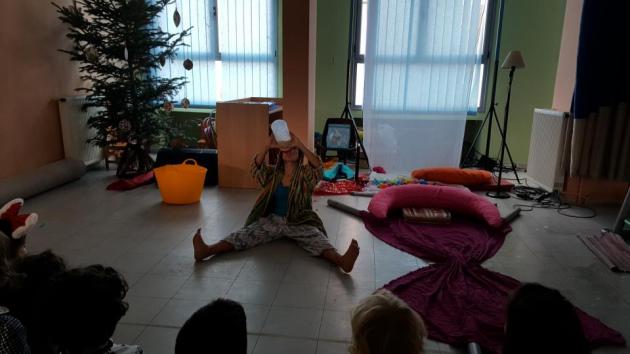 Η παράσταση, που απευθύνεται σε βρέφη από 8 μηνών έως νήπια 4 χρόνων, δόθηκε αποκλειστικά για τα παιδιά του Παιδικού Κέντρου ΑΠΘ, στο πλαίσιο της φετινής διευρυμένης συνεργασίας του Αριστοτέλειου Πανεπιστημίου Θεσσαλονίκης με το Κρατικό Θέατρο Βορείου Ελλάδος.