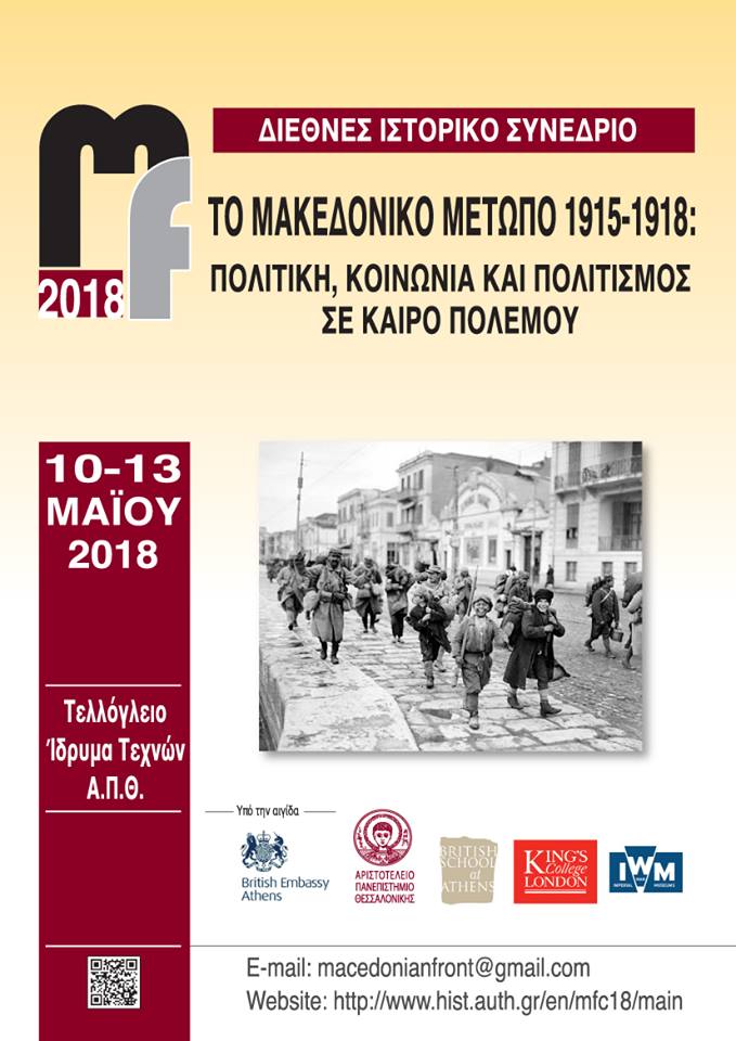 Διεθνές Συνέδριο: “Το Μακεδονικό Μέτωπο 1915-1918: Πολιτική, Κοινωνία και Πολιτισμός σε καιρό πολέμου”