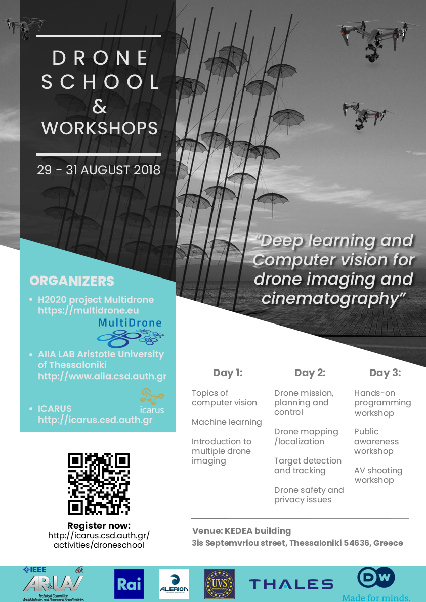 Πληροφορίες και εγγραφές στο θερινό σχολείο στον σύνδεσμο: http://icarus.csd.auth.gr/activities/droneschool