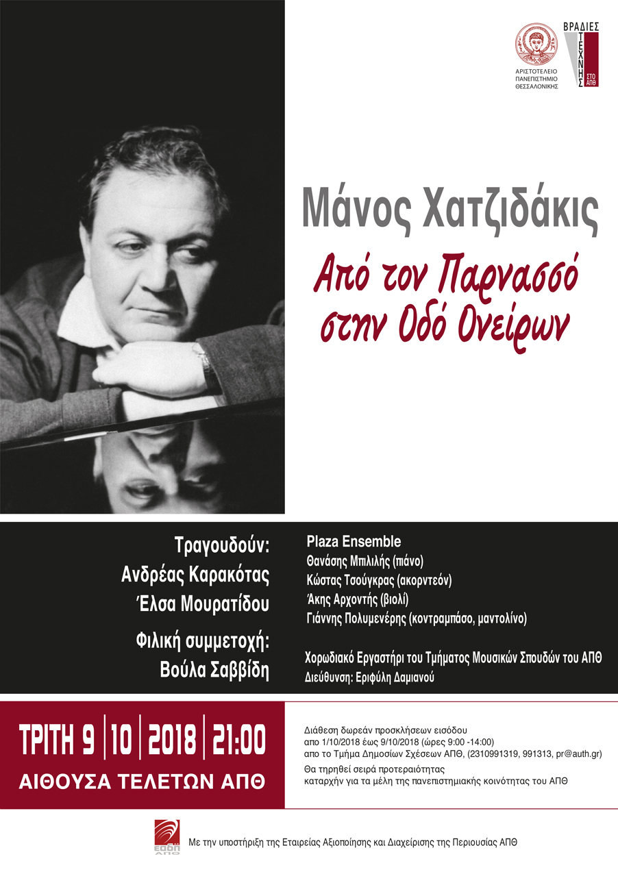 Για τρίτη χρονιά το ΑΠΘ στην πόλη-Παρουσίαση Προγράμματος & Συναυλία «Μάνος Χατζιδάκις: Από τον Παρνασσό στην Οδό Ονείρων»