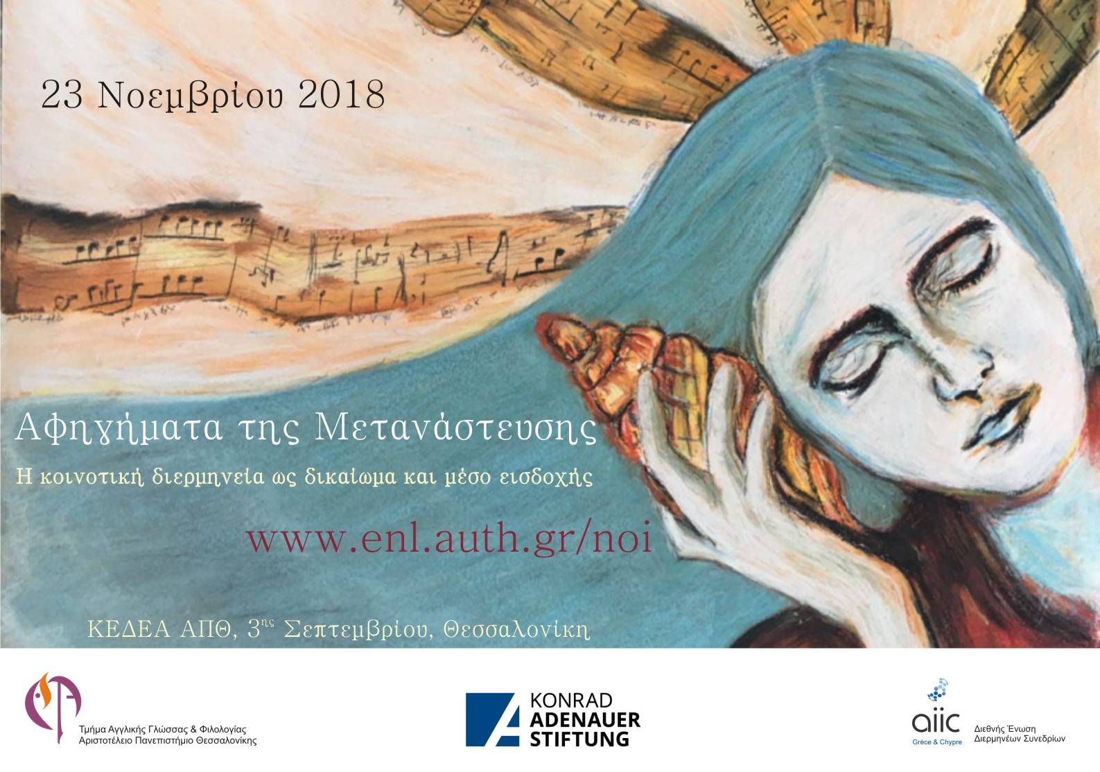 «Αφηγήματα της Μετανάστευσης: Η κοινοτική διερμηνεία ως δικαίωμα και μέσο εισδοχής» είναι ο τίτλος του Διεθνούς Συμποσίου που διοργανώνουν το Εργαστήριο Αφηγηματικής Έρευνας και το Εργαστήριο Μετάφρασης, Διερμηνείας και Επικοινωνίας του Τμήματος Αγγλικής Γλώσσας και Φιλολογίας του ΑΠΘ, με την υποστήριξη της Διεθνούς Ένωσης Διερμηνέων Συνεδρίων (AIIC Ελλάδας-Κύπρου).