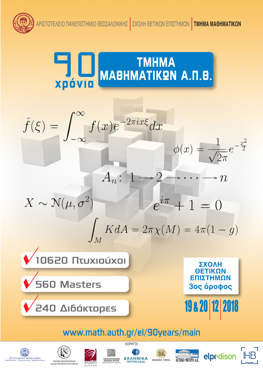 Για εγγραφές στον σύνδεσμο: http://www.math.auth.gr/el/90years/registration