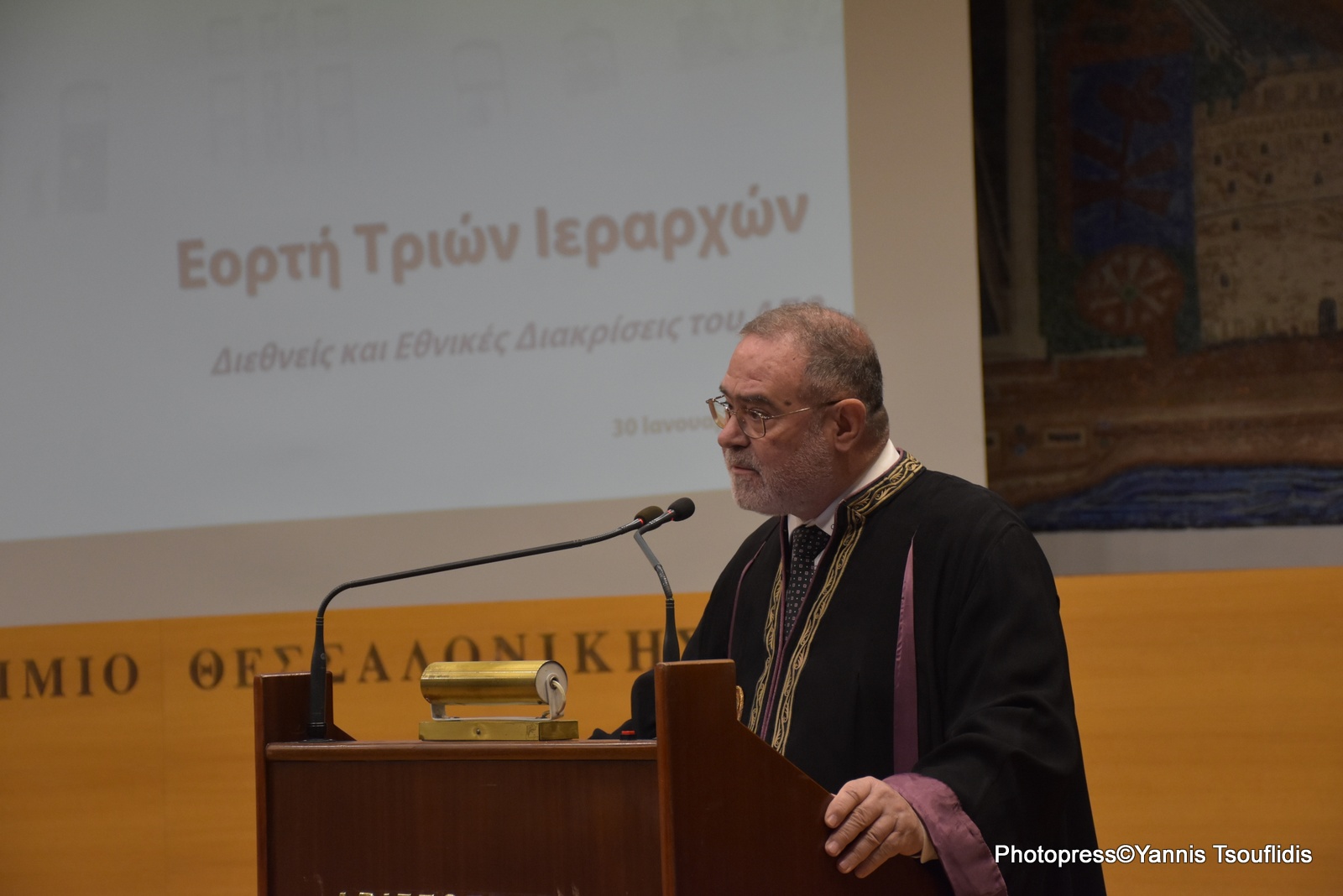 Με λαμπρότητα και επισημότητα, παρουσία των Πρυτανικών Αρχών και της Συγκλήτου, πραγματοποιήθηκε χτες, Τετάρτη 30 Ιανουαρίου 2019, στην κατάμεστη Αίθουσα Τελετών του ΑΠΘ, η Τελετή Εορτασμού των Τριών Ιεραρχών και της απονομής τιμής στα μέλη ΔΕΠ και φοιτητές της πανεπιστημιακής κοινότητας που έλαβαν σημαντικές διακρίσεις από εθνικούς και διεθνείς φορείς κατά το 2018.