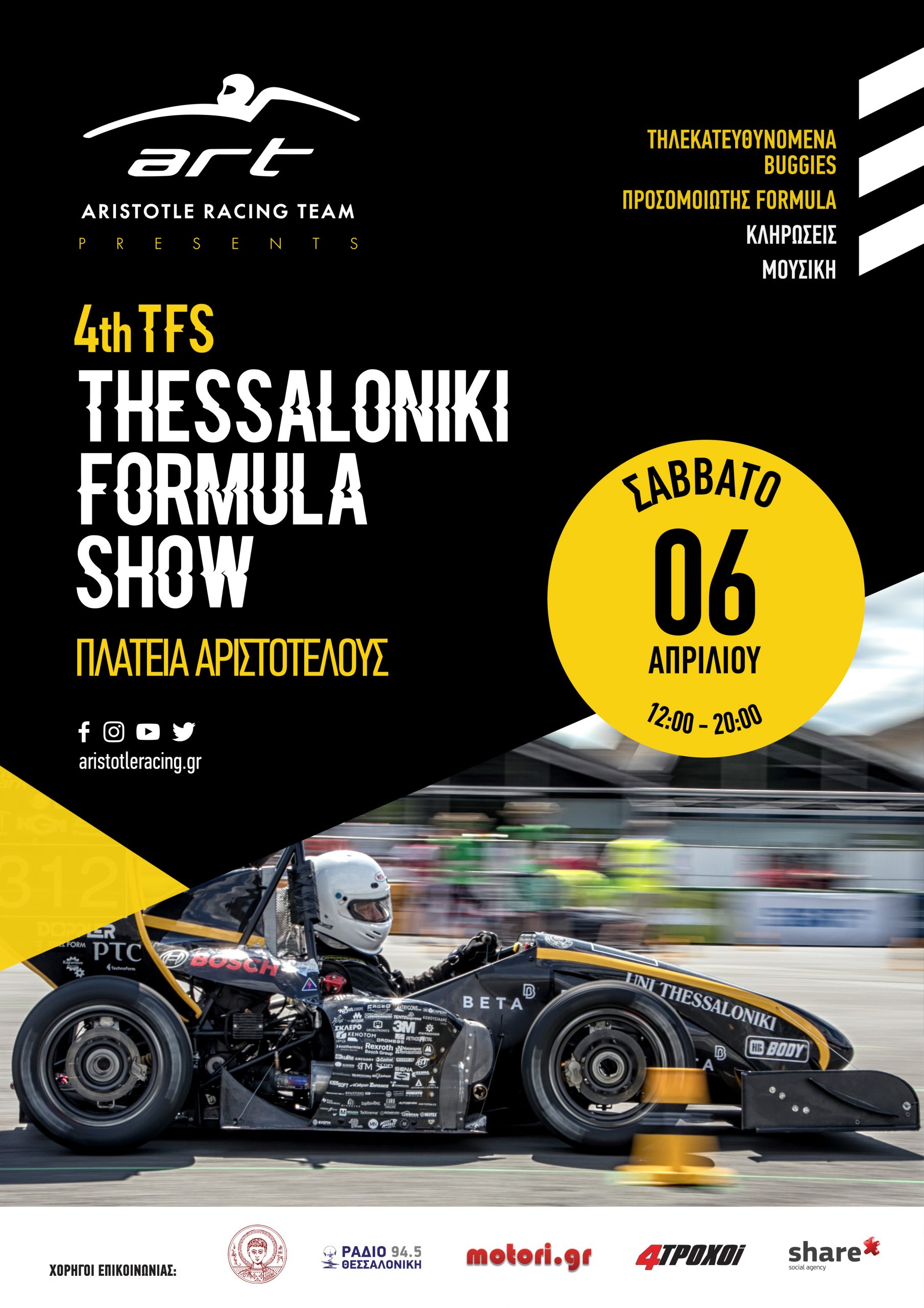 Η φοιτητική ομάδα του Αριστοτέλειου Πανεπιστημίου Θεσσαλονίκης Aristotle Racing Team (ΑRT) θα προσφέρει ένα αγωνιστικό υπερθέαμα στο κέντρο της πόλης, με την εκδήλωση «4th Thessaloniki Formula Show (TFS)».