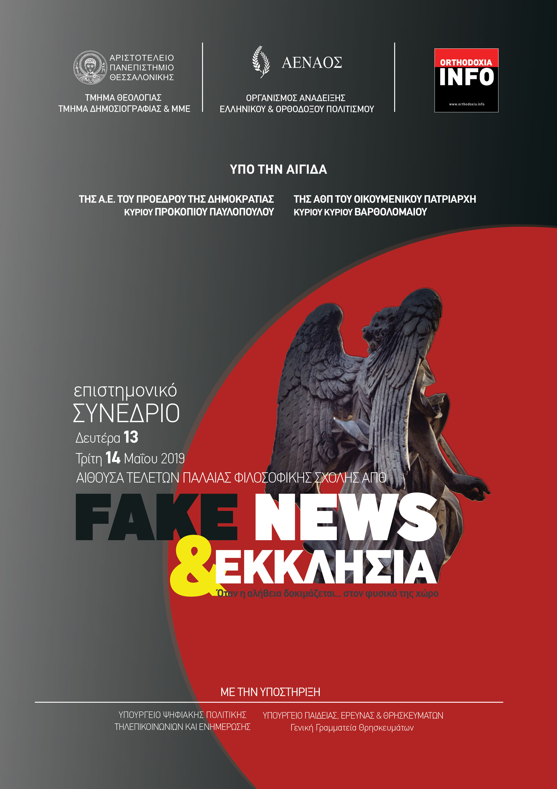 Σε αυτά τα ερωτήματα θα επιχειρήσει να δώσει απαντήσεις το διήμερο Συνέδριο με τίτλο «Fake News & Εκκλησία: Όταν η αλήθεια δοκιμάζεται στον φυσικό της χώρο», που διοργανώνουν τα Τμήματα Θεολογίας και Δημοσιογραφίας και ΜΜΕ του Αριστοτέλειου Πανεπιστημίου Θεσσαλονίκης, σε συνεργασία με τον Οργανισμό Ανάδειξης Ελληνικού και Ορθόδοξου Πολιτισμού «ΑΕΝΑΟΣ».