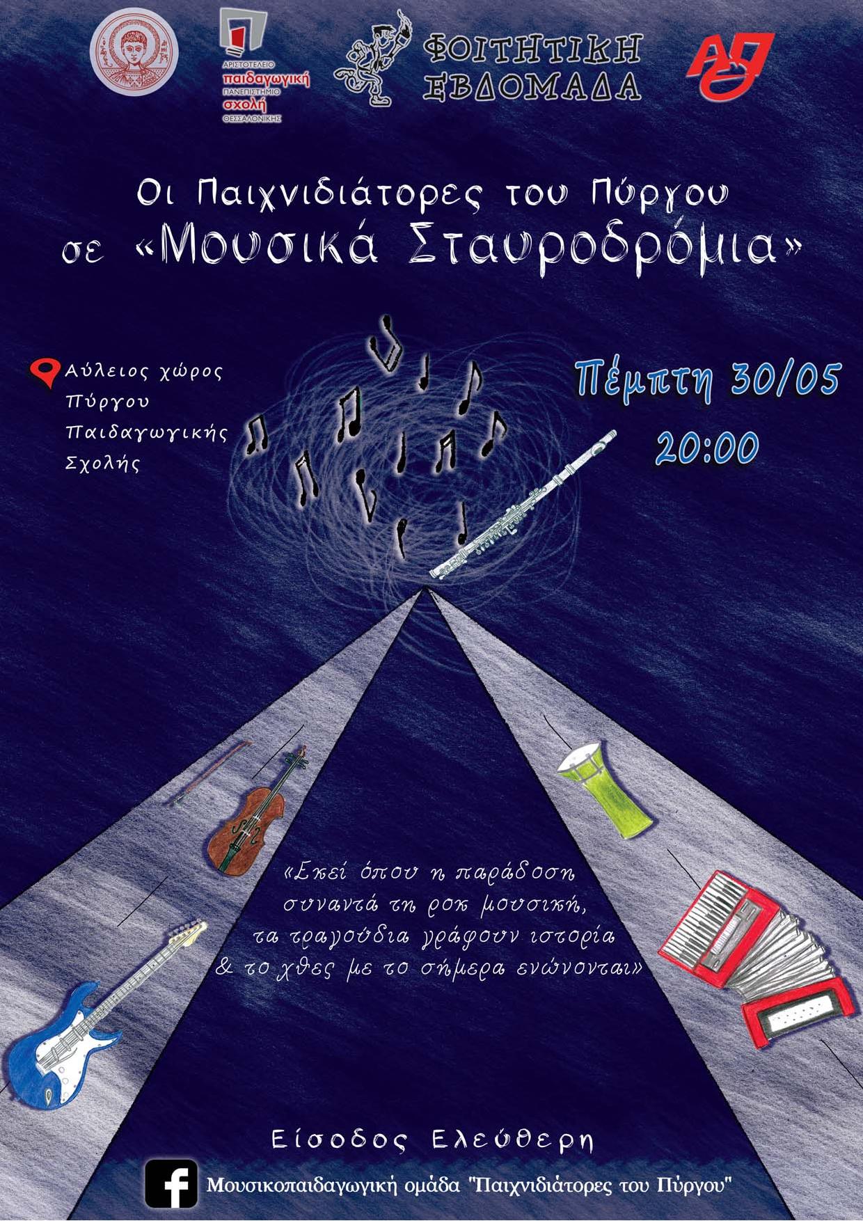 Η ομάδα της Παιδαγωγικής Σχολής παρουσιάζει μια μουσική παράσταση-συναυλία, με μουσικοπαιδαγωγικό προφίλ, το οποίο γίνεται εμφανές μέσα από τη χρήση των ενορχηστρώσεων, από πειραματισμούς, συνδυασμούς στυλ και ηχοχρωμάτων, καθώς και την εμψυχωτική και επικοινωνιακή διάθεση επί σκηνής.
