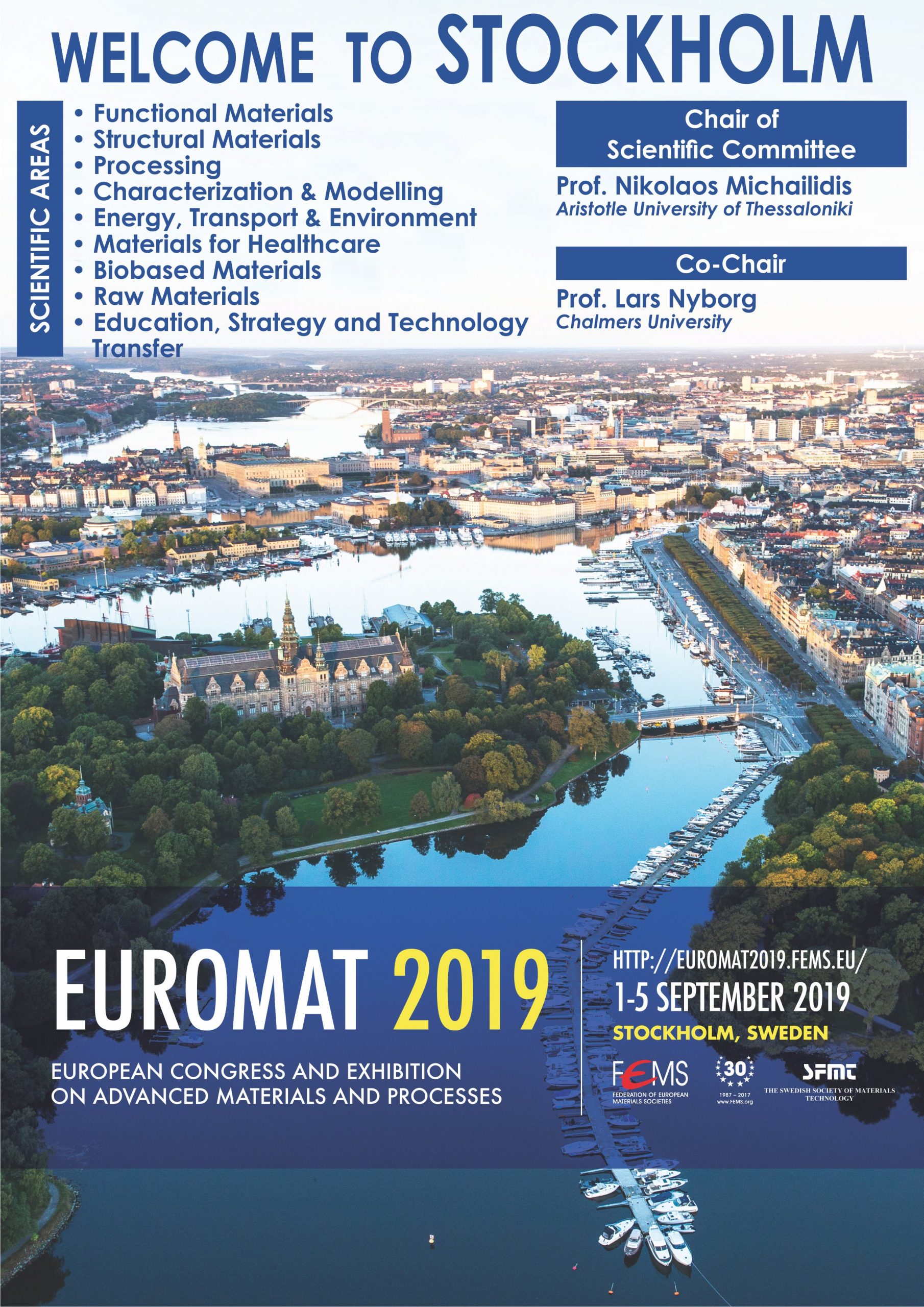 Το Συνέδριο λαμβάνει χώρα κάθε δύο χρόνια από το 1989 και αναγνωρίζεται διεθνώς ως το κορυφαίο ευρωπαϊκό φόρουμ στον τομέα της επιστήμης και μηχανικής των υλικών (Μaterials Science and Engineering – MSE). Το «EUROMAT 2019» διοργανώθηκε από τη Σουηδική Εταιρεία Τεχνολογίας Υλικών, Swedish Society for Materials Technology (SFMT) και υποστηρίχθηκε από έναν εντυπωσιακό αριθμό χορηγών και εκθετών, παρέχοντας ευκαιρίες εκπαίδευσης, δικτύωσης και προβολής σε όλους τους συνέδρους.