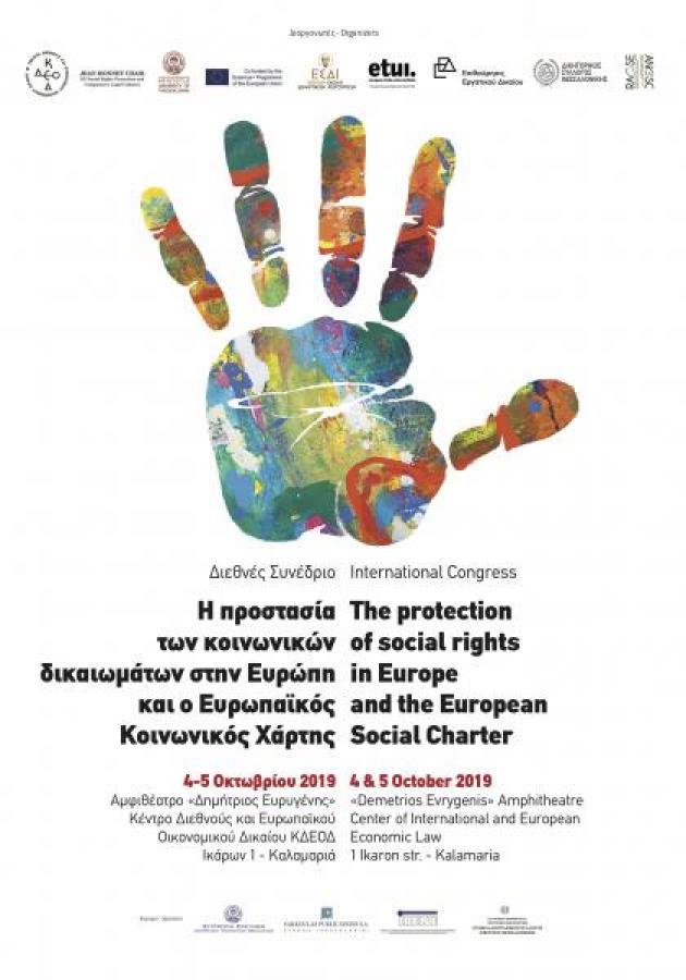 Η Νομική Σχολή του Αριστοτέλειου Πανεπιστημίου Θεσσαλονίκης, σε συνεργασία με την Έδρα Jean Monnet «Η προστασία των Κοινωνικών Δικαιωμάτων στην Ευρώπη και Συγκριτικοί Νομικοί Πολιτισμοί», το Κέντρο Διεθνούς και Ευρωπαϊκού Οικονομικού Δικαίου (ΚΔΕΟΔ), το Ακαδημαϊκό Δίκτυο για τον Ευρωπαϊκό Κοινωνικό Χάρτη και τα Κοινωνικά Δικαιώματα [Academic Network for European Social Charter and Social Rights (ANESC/RACSE)], τον Δικηγορικό Σύλλογο Θεσσαλονίκης και την Εθνική Σχολή Δικαστικών Λειτουργών, διοργανώνει Διεθνές Συνέδριο με θέμα «Η προστασία των κοινωνικών δικαιωμάτων στην Ευρώπη και ο Ευρωπαϊκός Κοινωνικός Χάρτης».