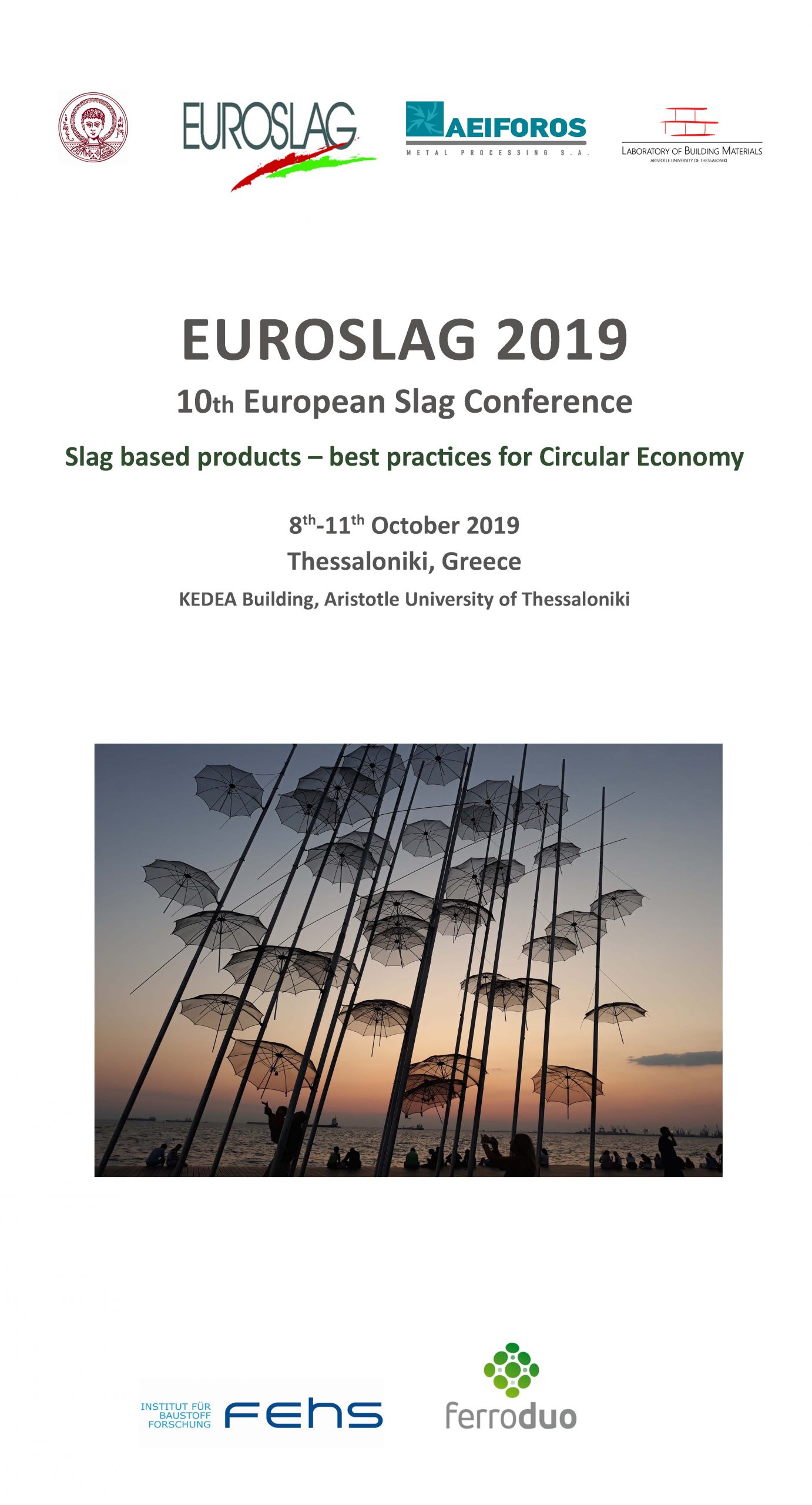 Το Εργαστήριο Δομικών Υλικών της Πολυτεχνικής Σχολής του Αριστοτέλειου Πανεπιστημίου Θεσσαλονίκης, σε συνεργασία με τον Ευρωπαϊκό Οργανισμό EUROSLAG και τη βιομηχανία ΑΕΙΦΟΡΟΣ Α.Ε. του ομίλου ΒΙΟΧΑΛΚΟ, διοργανώνει το Διεθνές Συνέδριο EUROSLAG Conference 2019 με θέμα τη χρήση των Σκωριών Σιδήρου/Χαλυβουργίας ως πρώτες ύλες για νέα προϊόντα που προκύπτουν από την ανακύκλωση των παραπροϊόντων αυτών.
