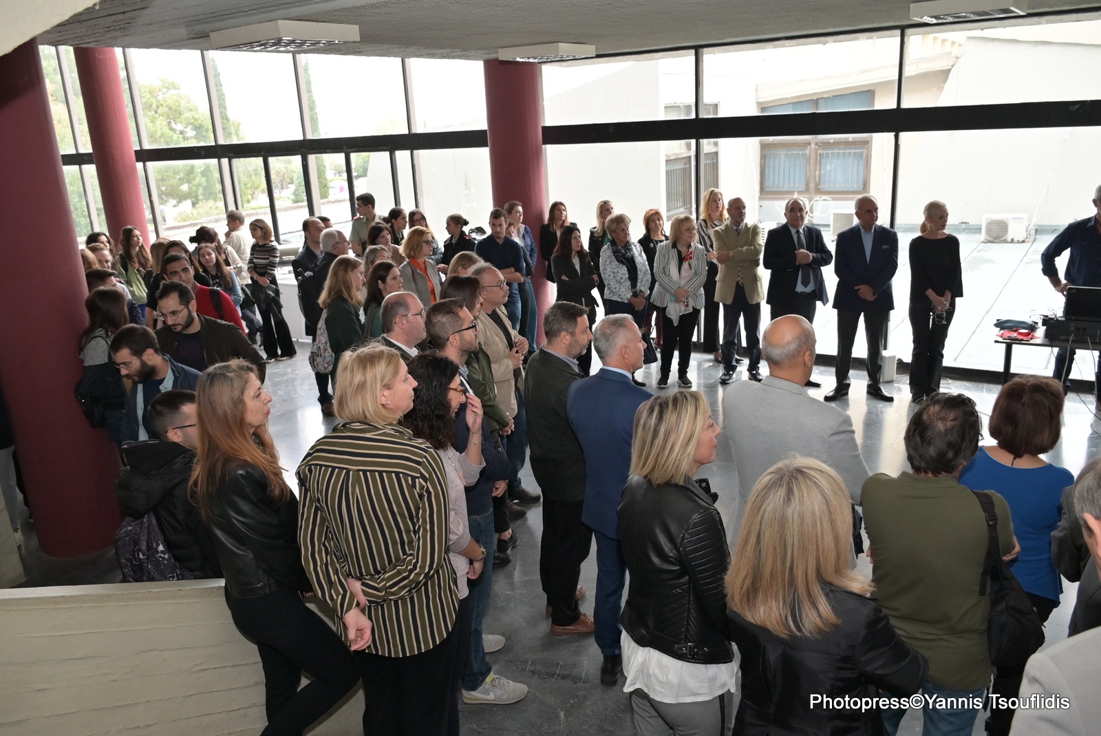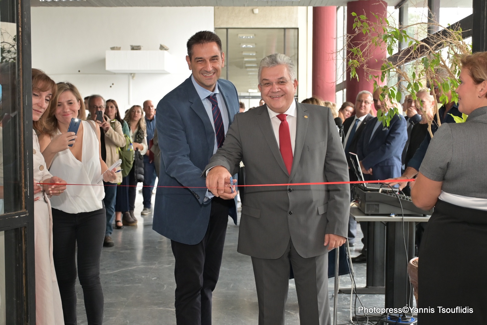 Την κορδέλα των εγκαινίων έκοψαν μαζί ο Πρύτανης του ΑΠΘ και ο Κοσμήτορας της Σχολής Οικονομικών και Πολιτικών Επιστημών.