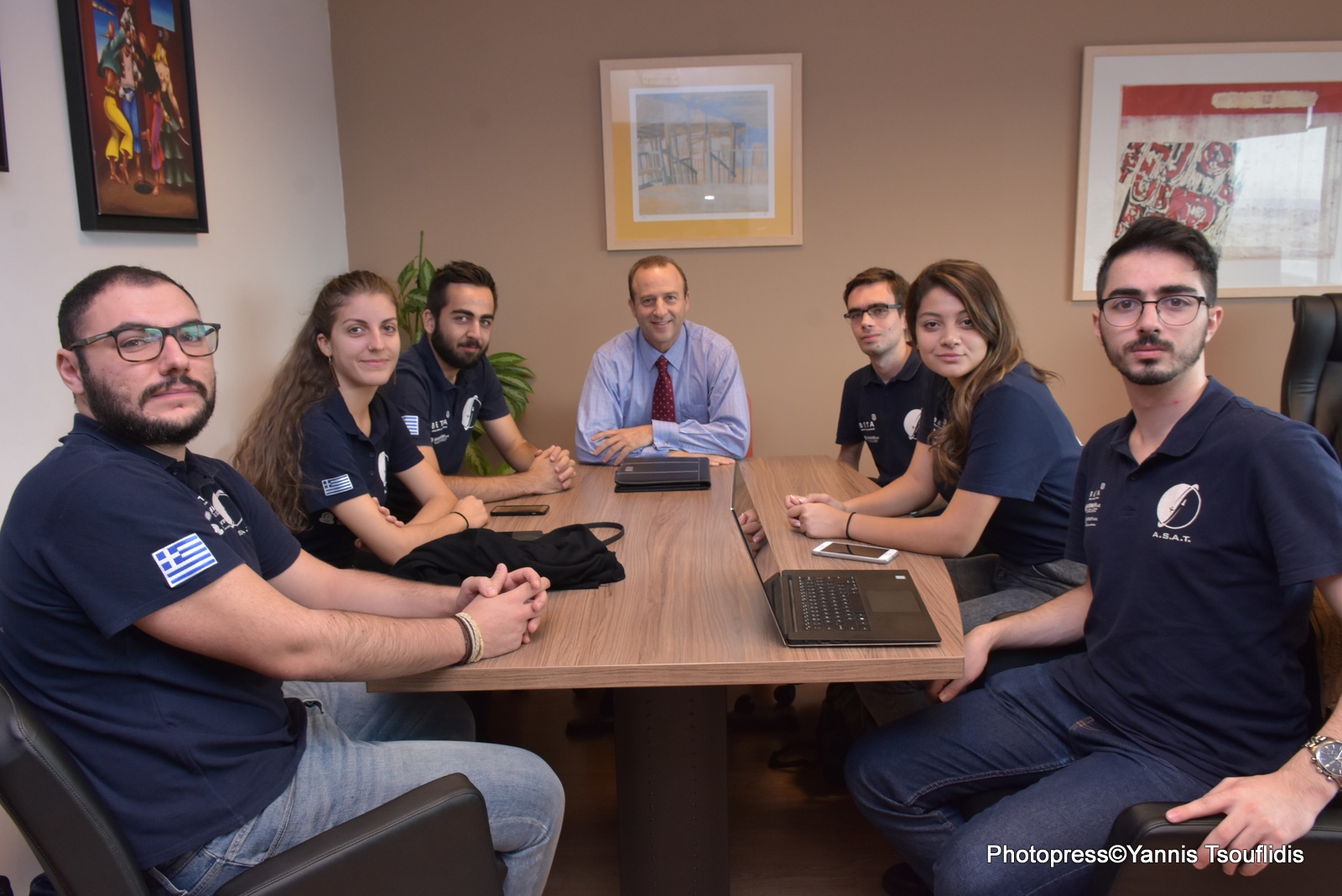 Με μέλη της Ομάδας Διαστημικής και Αεροναυπηγικής του Αριστοτέλειου Πανεπιστημίου Θεσσαλονίκης (Aristotle Space and Aeronautics Team – A.S.A.T.) συναντήθηκε την Παρασκευή 11 Οκτωβρίου 2019 ο Αντιπρύτανης Έρευνας και Διά Βίου Εκπαίδευσης του ΑΠΘ, Αν. Καθηγητής Ευστράτιος Στυλιανίδης.