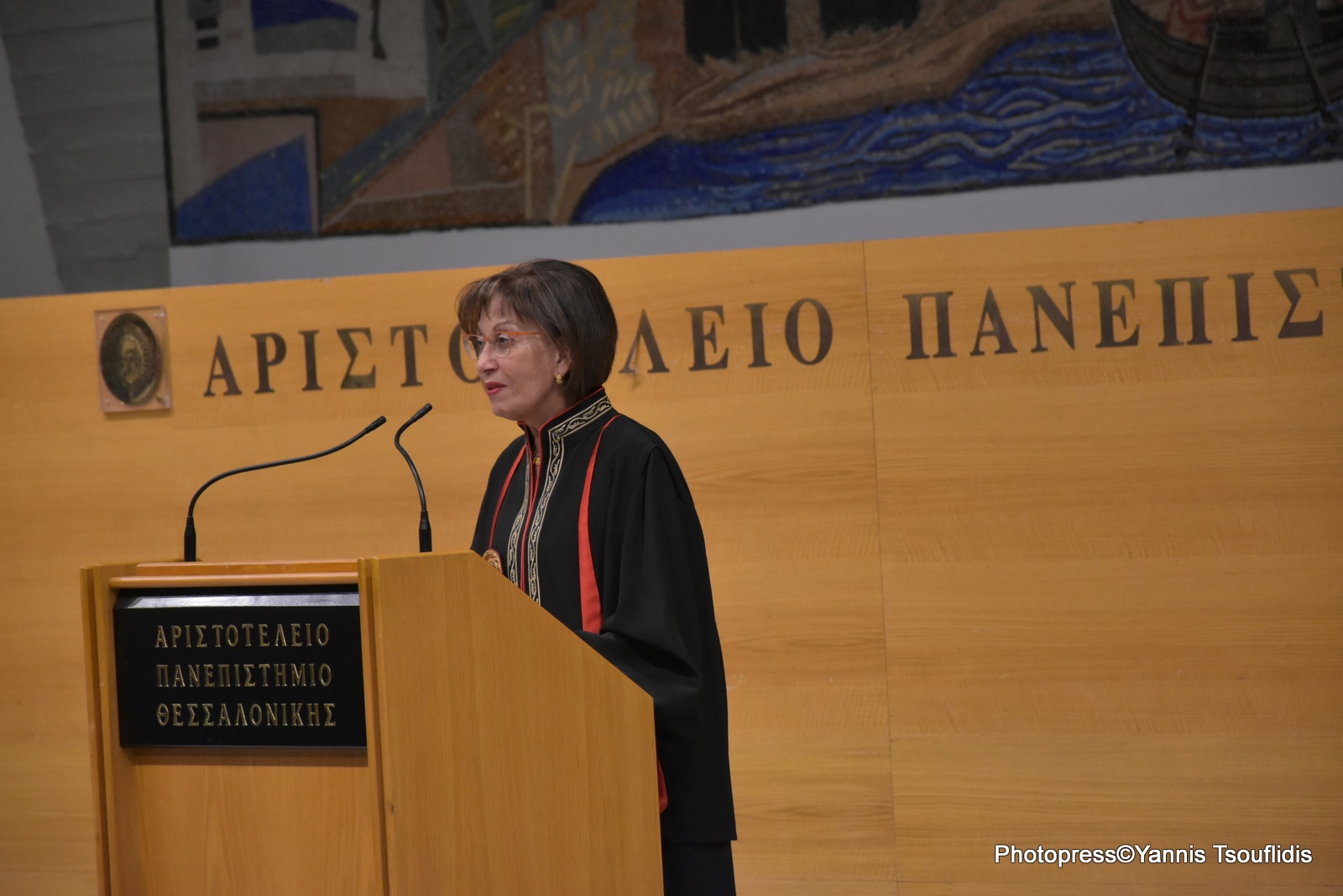 Την τελετή άνοιξε  η Χορωδία «Γιάννης Μάντακας» του ΑΠΘ με το Απολυτίκιο του Αγίου Δημητρίου, υπό τη διεύθυνση της Εριφύλης Δαμιανού. Ακολούθησαν η προσφώνηση του Πρύτανη του ΑΠΘ, Καθηγητή Νικολάου Γ. Παπαϊωάννου, και η εκφώνηση του Πανηγυρικού της ημέρας από την Καθηγήτρια της Νομικής Σχολής του ΑΠΘ, Γιαννούλα Καρύμπαλη-Τσίπτσιου, με θέμα «1940: Η  Άρνηση ως Πρόγραμμα Εθνικής Ανάτασης».