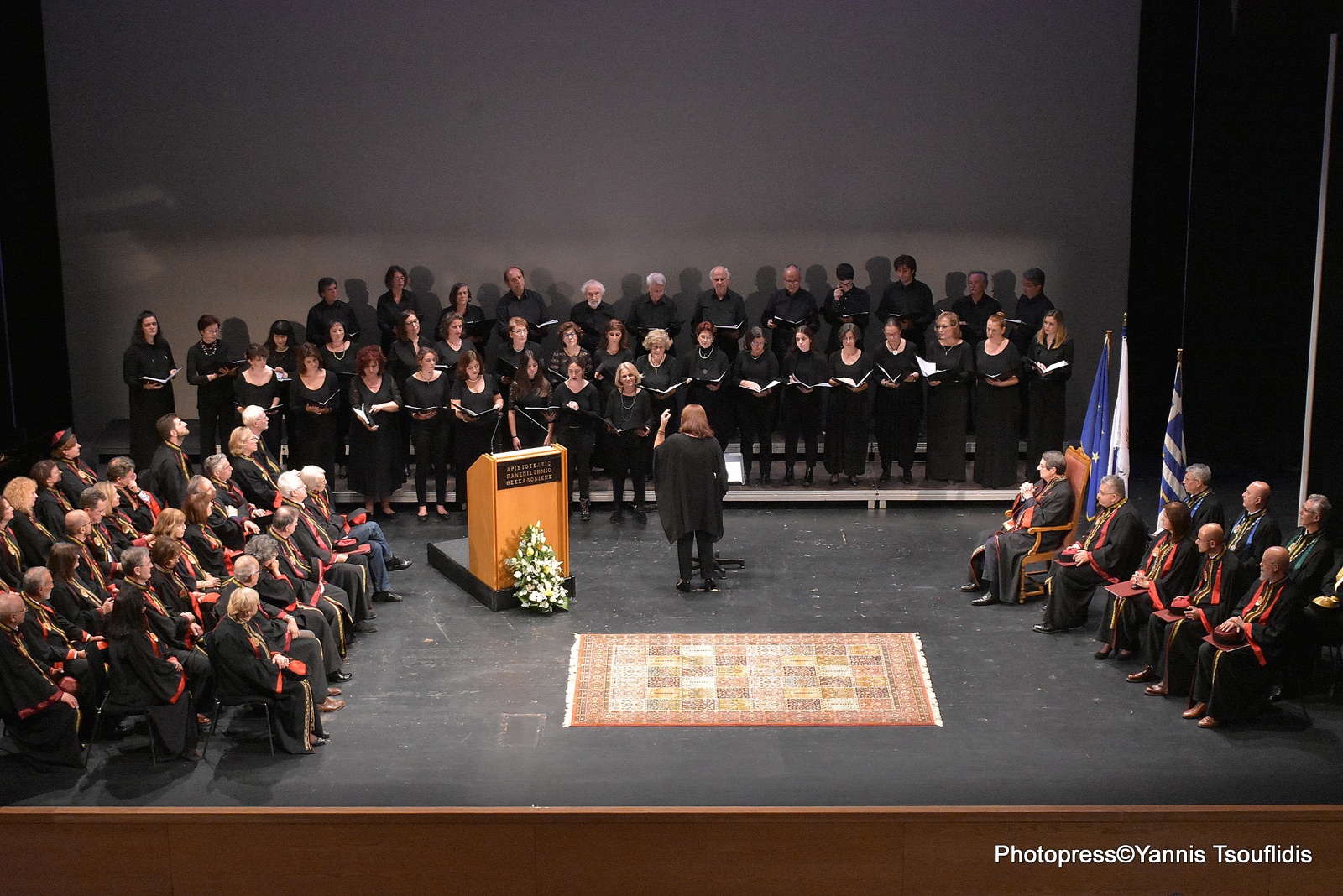 Η Τελετή Αναγόρευσης ολοκληρώθηκε με μουσικό μέρος από τη Χορωδία «Γιάννης Μάντακας» του ΑΠΘ, σε διεύθυνση Εριφύλης Δαμιανού.