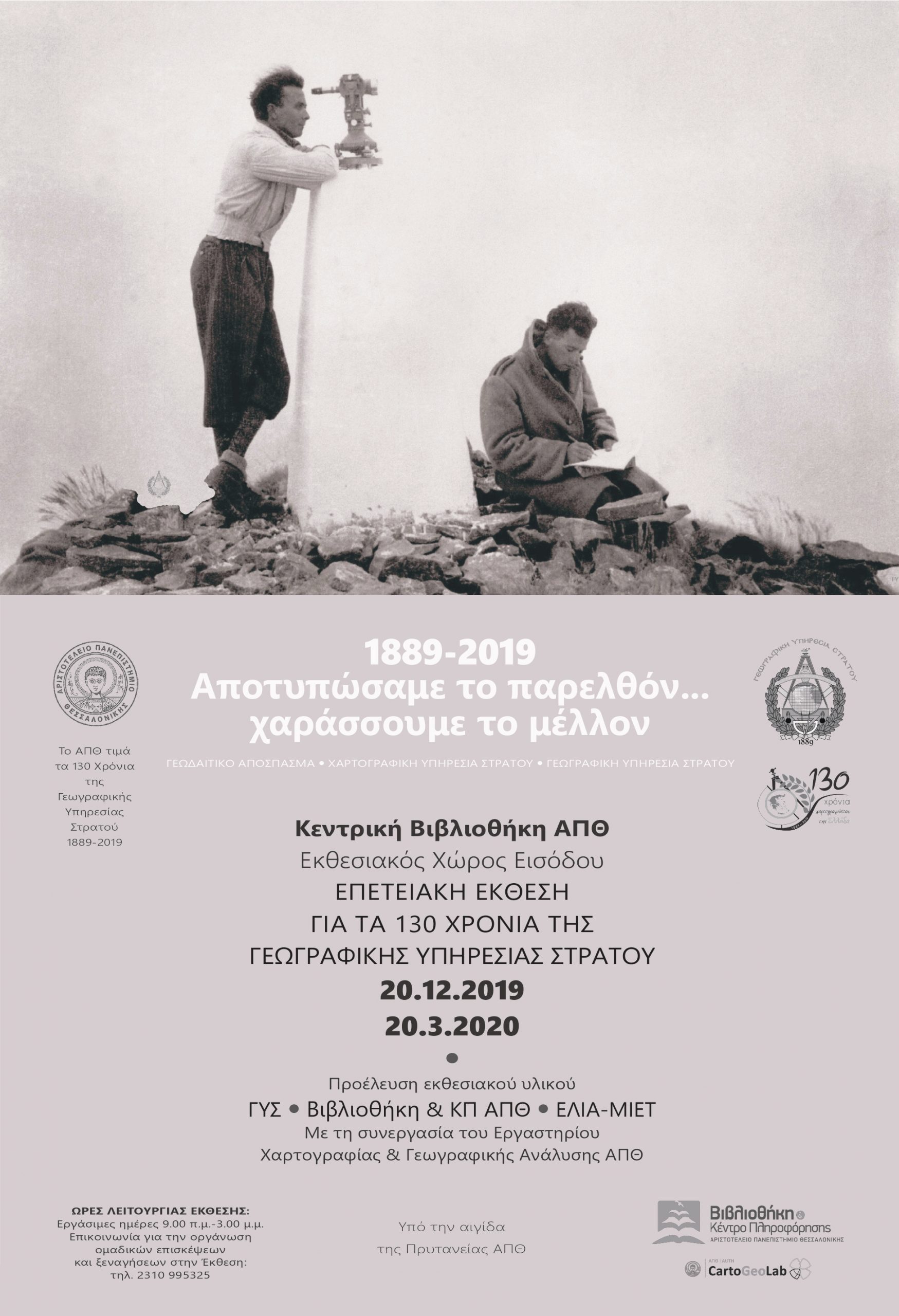 Η έκθεση «1889-2019: Αποτυπώσαμε το παρελθόν, χαράσσουμε το μέλλον» θα εγκαινιαστεί από τον Πρύτανη του Αριστοτέλειου Πανεπιστημίου Θεσσαλονίκης, Καθηγητή Νικόλαο Γ. Παπαϊωάννου, την Παρασκευή 20 Δεκεμβρίου 2019, στις 10:00, στον εκθεσιακό χώρο που βρίσκεται στην είσοδο της Κεντρικής Βιβλιοθήκης του ΑΠΘ.