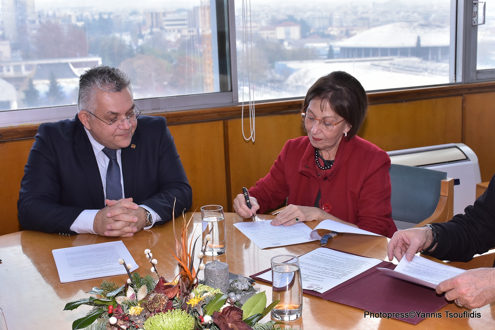 Φωτογραφία 1: Ο Πρύτανης του ΑΠΘ, Καθηγητής Νικόλαος Γ. Παπαϊωάννου, και η Πρόεδρος του Διοικητικού Συμβουλίου του ΚΘΒΕ, Καθηγήτρια Γιαννούλα Καρύμπαλη-Τσίπτσιου.
