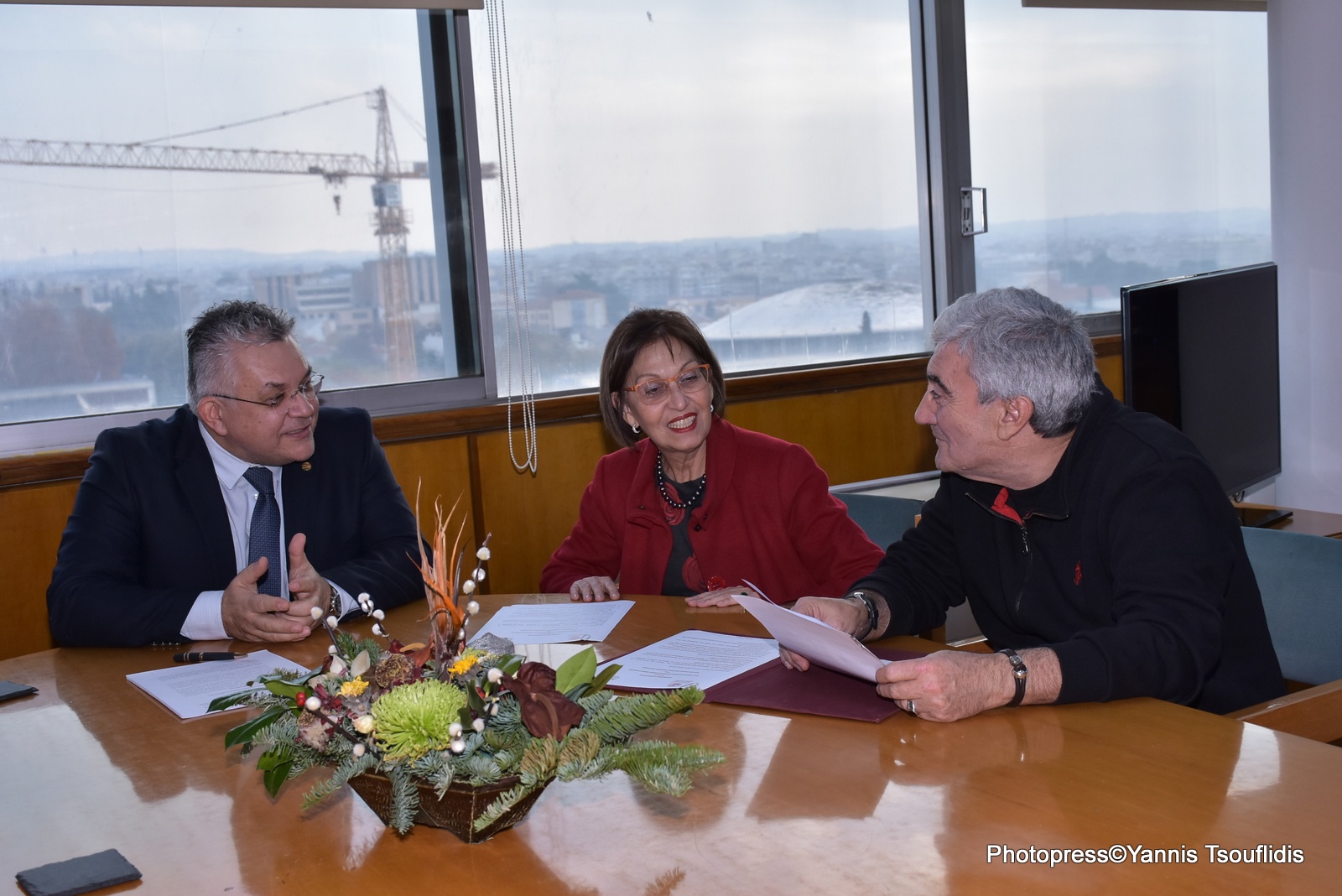Την ανανέωση του Συμφώνου Συνεργασίας μεταξύ του Αριστοτέλειου Πανεπιστημίου Θεσσαλονίκης και του Κρατικού Θεάτρου Βορείου Ελλάδος (ΚΘΒΕ) υπέγραψαν ο Πρύτανης του ΑΠΘ, Καθηγητής Νικόλαος Γ. Παπαϊωάννου, και η Πρόεδρος του Διοικητικού Συμβουλίου του ΚΘΒΕ, Καθηγήτρια του ΑΠΘ, Γιαννούλα Καρύμπαλη-Τσίπτσιου, την Παρασκευή 20 Δεκεμβρίου 2019. Στη συνάντηση συμμετείχε, επίσης, ο Αναπληρωτής Καλλιτεχνικός Διευθυντής του ΚΘΒΕ, Νίκος Νικολάου.