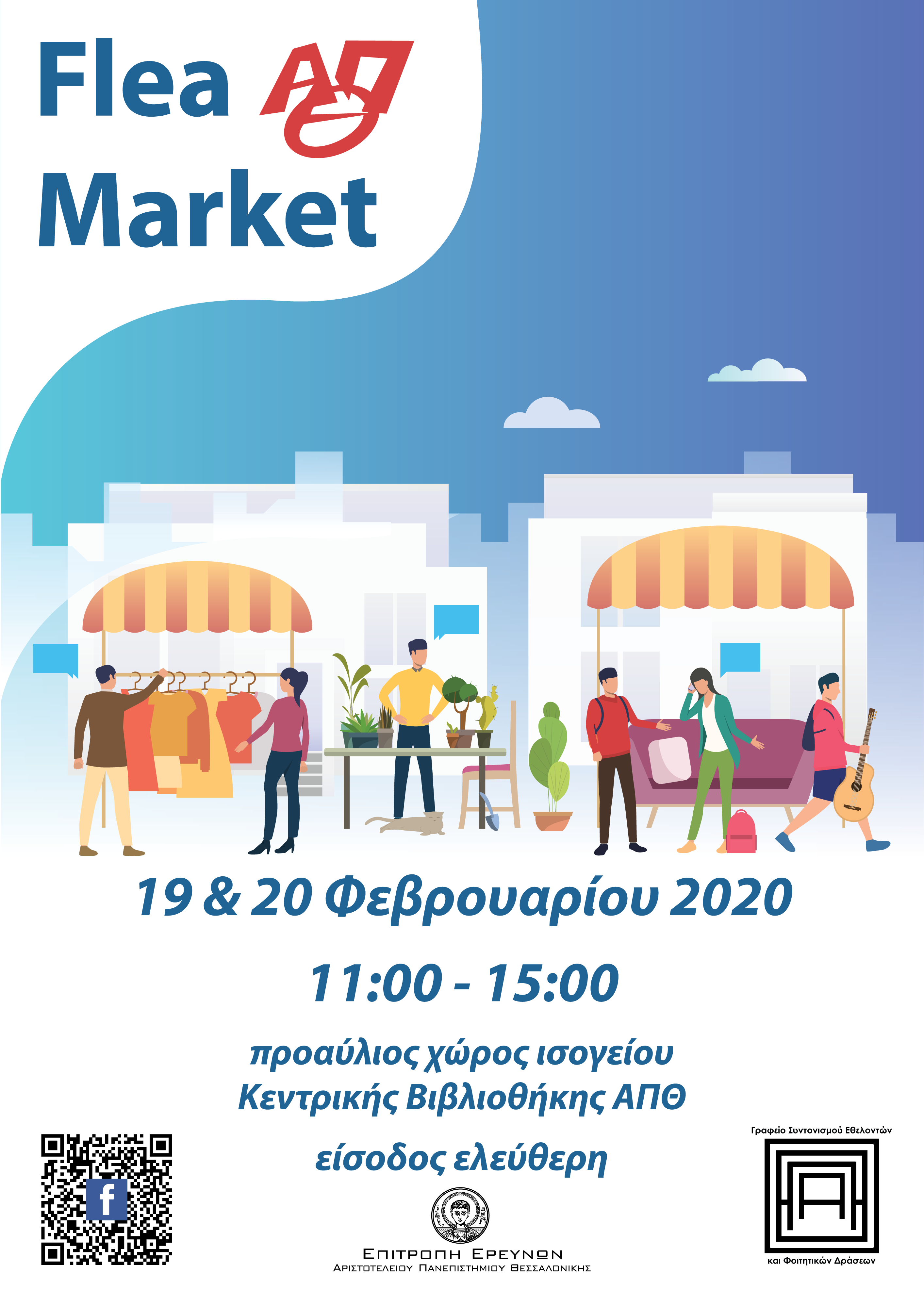 Στις 19 και 20 Φεβρουαρίου 2020, από τις 11:00 έως τις 15:00, διοργανώνεται στο προαύλιο της Κεντρικής Βιβλιοθήκης του ΑΠΘ το πρώτο Flea Market, ένας θεσμός που έχει αγαπηθεί τόσο από τον κόσμο της Θεσσαλονίκης, με σκοπό τη γνωριμία με τις φοιτητικές ομάδες του Πανεπιστημίου και την ενίσχυση των δράσεών τους.