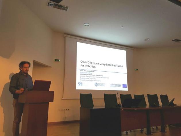 Η εναρκτήρια συνάντηση του ερευνητικού έργου «Open Deep Learning for Robotics Toolkit – OpenDR» πραγματοποιήθηκε τον Ιανουάριο του 2020, ενώ παράλληλα με αυτή διοργανώθηκε και η ανοιχτή ημερίδα με τίτλο «Βαθιά Μάθηση για Ρομποτική», με συντονιστή τον Αναπληρωτή Καθηγητή του Τμήματος Πληροφορικής του ΑΠΘ, Αναστάσιο Τέφα. Την ημερίδα παρακολούθησαν περίπου 130 συμμετέχοντες που είχαν την ευκαιρία να ενημερωθούν για τις τελευταίες εξελίξεις στην περιοχή της Βαθιάς Μάθησης με εφαρμογή στη Ρομποτική και ειδικότερα σε εφαρμογές φροντίδας και υγείας, γεωργίας ακριβείας και ευέλικτης βιομηχανικής παραγωγής.